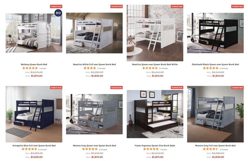 This URL suggests they sell bean bags. But the reality is that they offer everything from triple bunk beds to retro dining sets to queen loft beds.